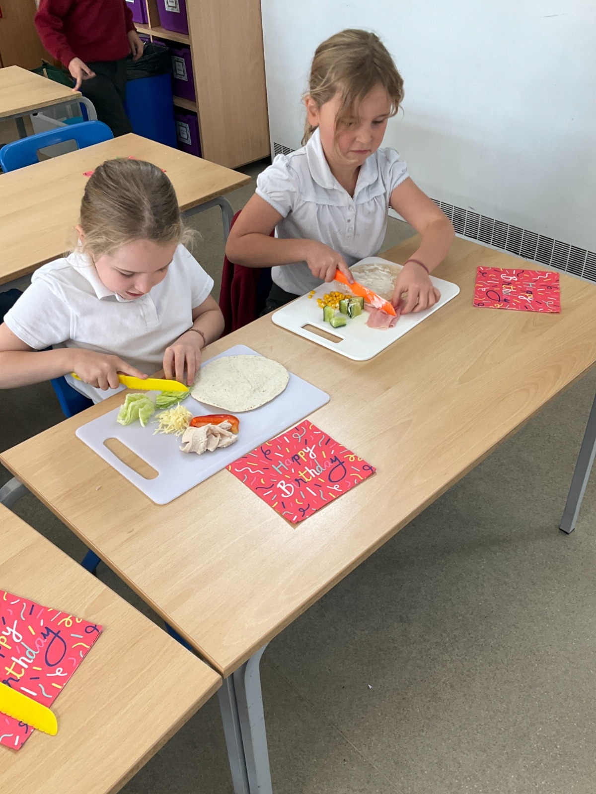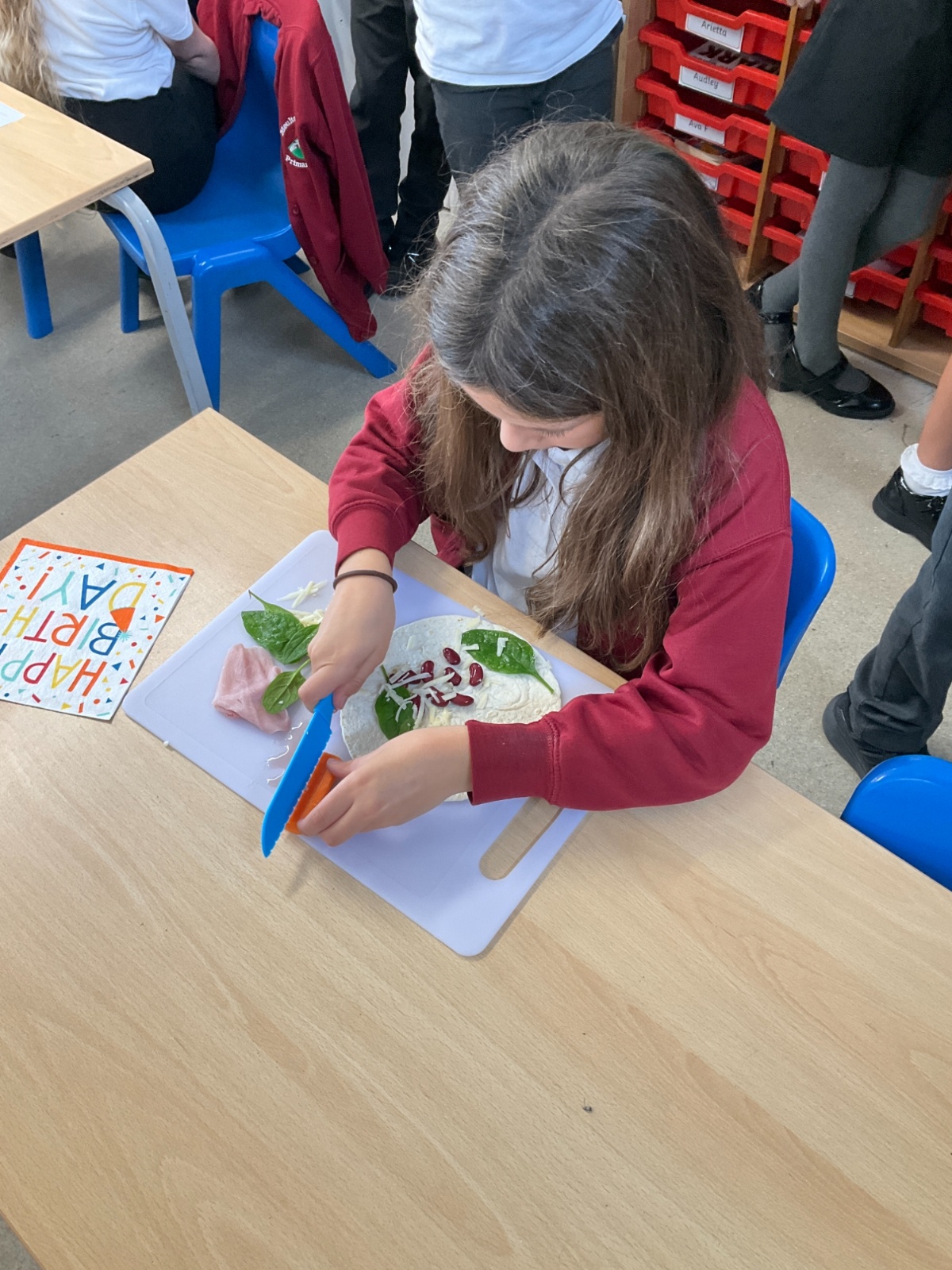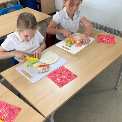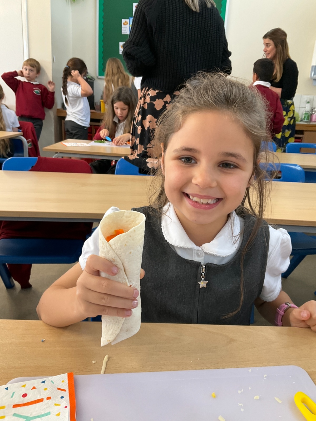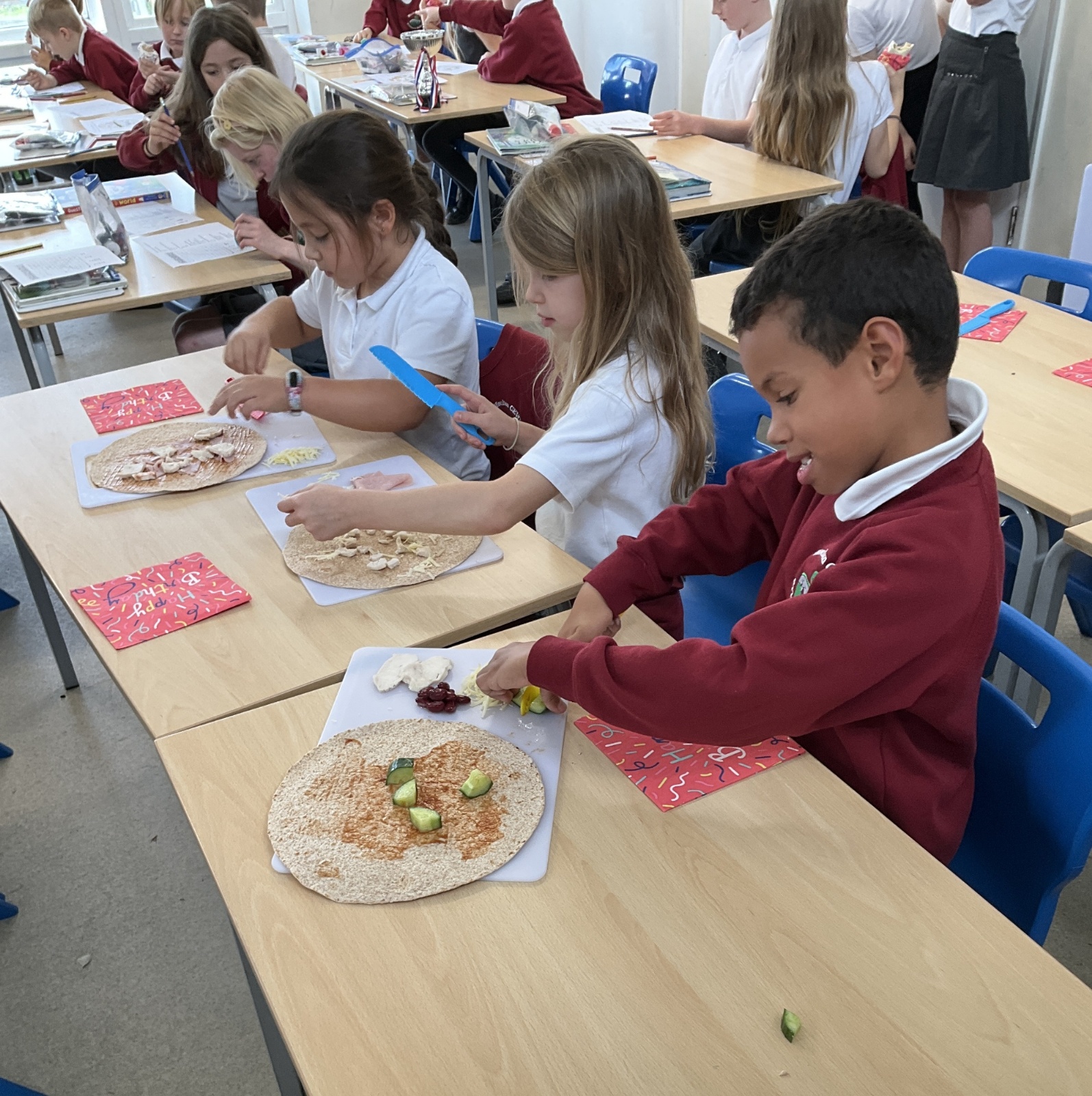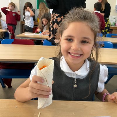 Budding Year 3 chefs rolled up their sleeves (and their wraps) in Design Technology. Drawing on their scientific understanding of the five food groups (and tastebuds), they designed their own healthy, balanced wraps. With independent, careful slicing, grating, spreading, and folding, their creations were as nutritious as they were delicious.