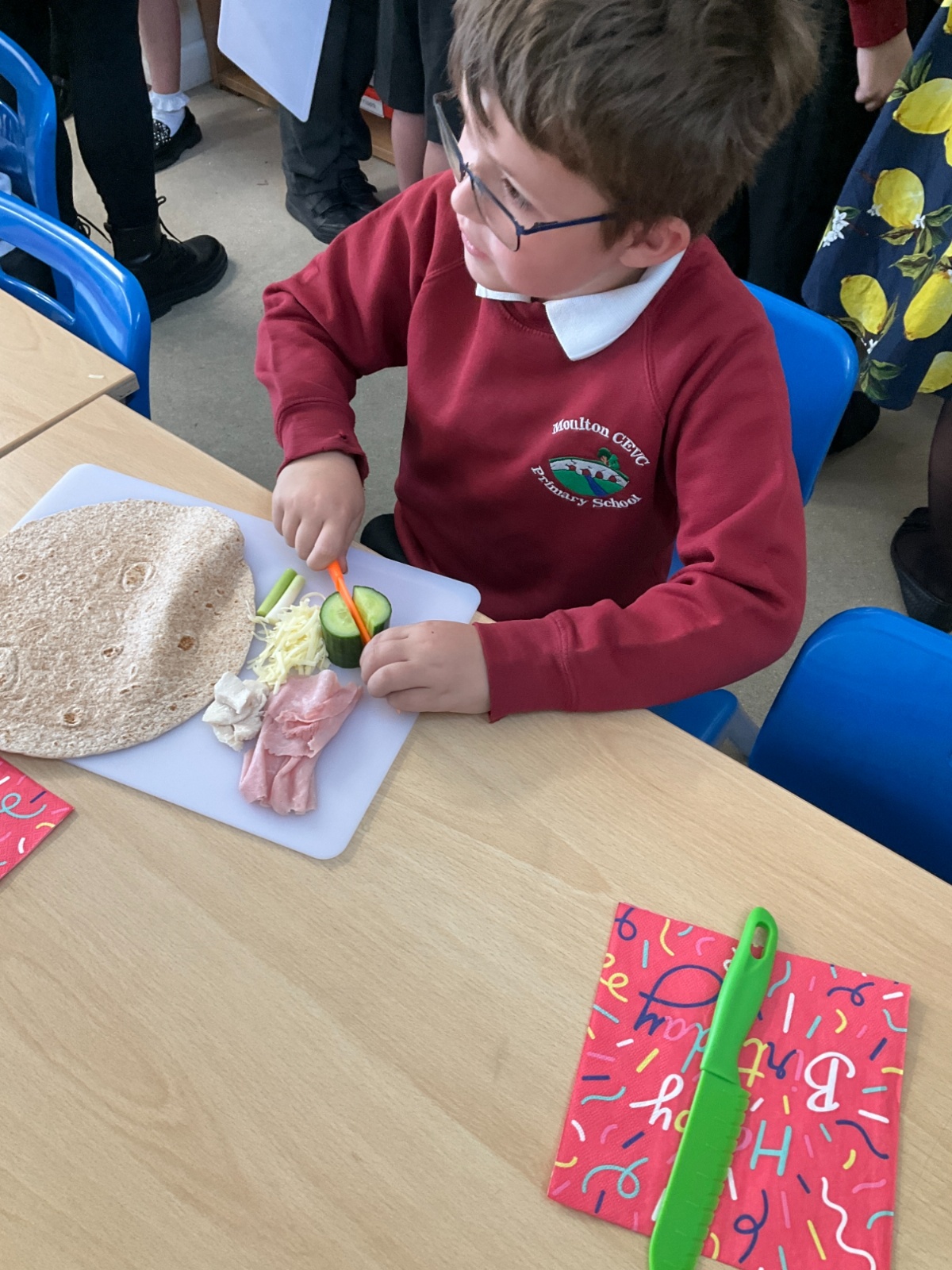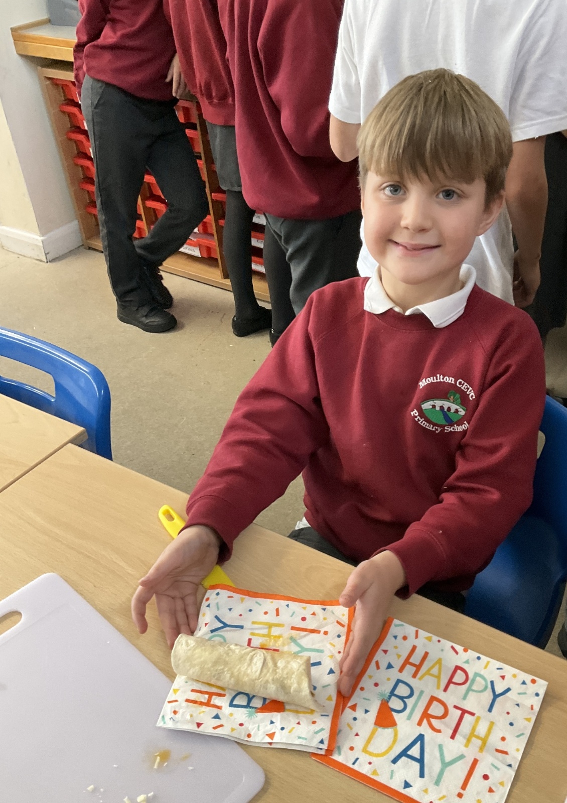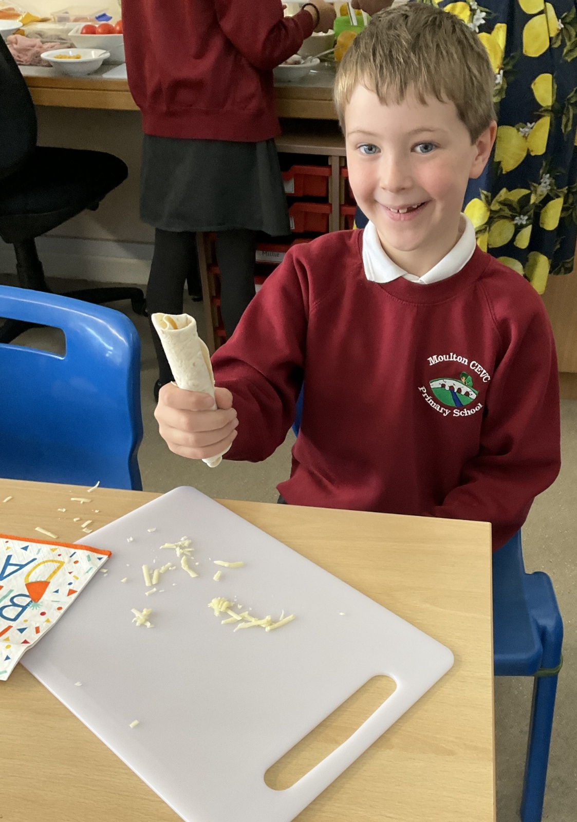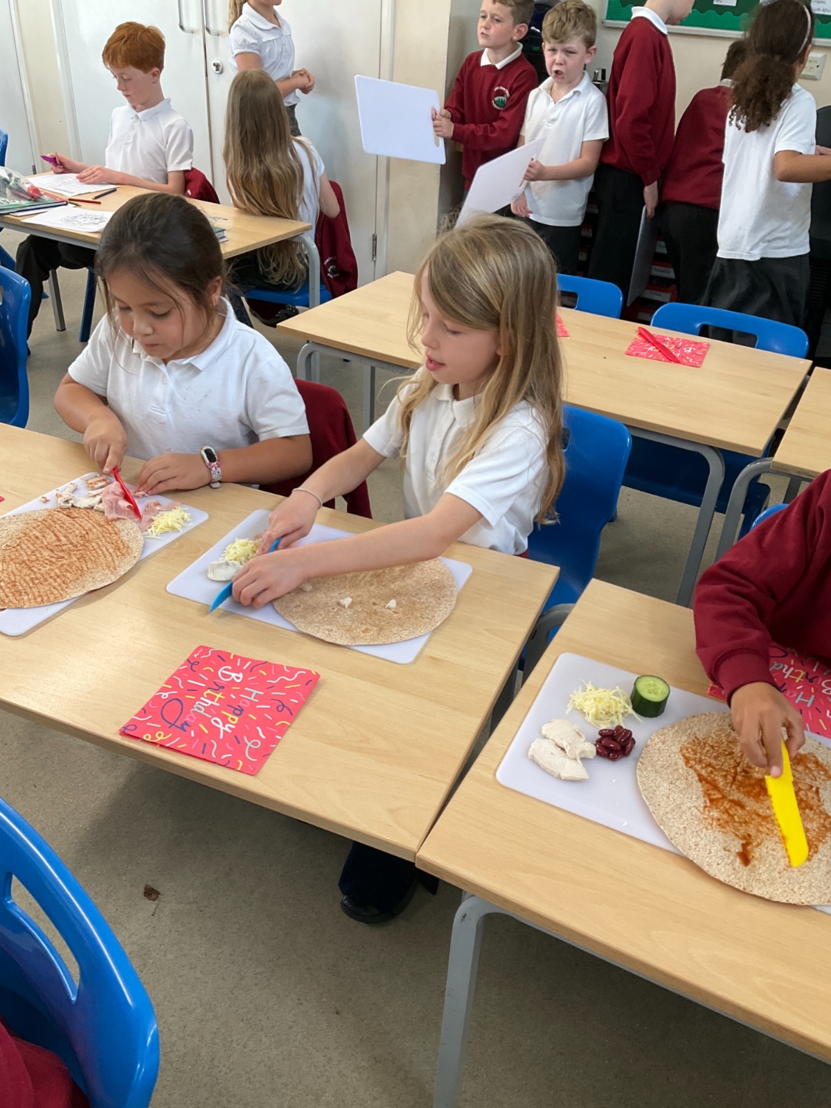 Budding Year 3 chefs rolled up their sleeves (and their wraps) in Design Technology. Drawing on their scientific understanding of the five food groups (and tastebuds), they designed their own healthy, balanced wraps. With independent, careful slicing, grating, spreading, and folding, their creations were as nutritious as they were delicious.