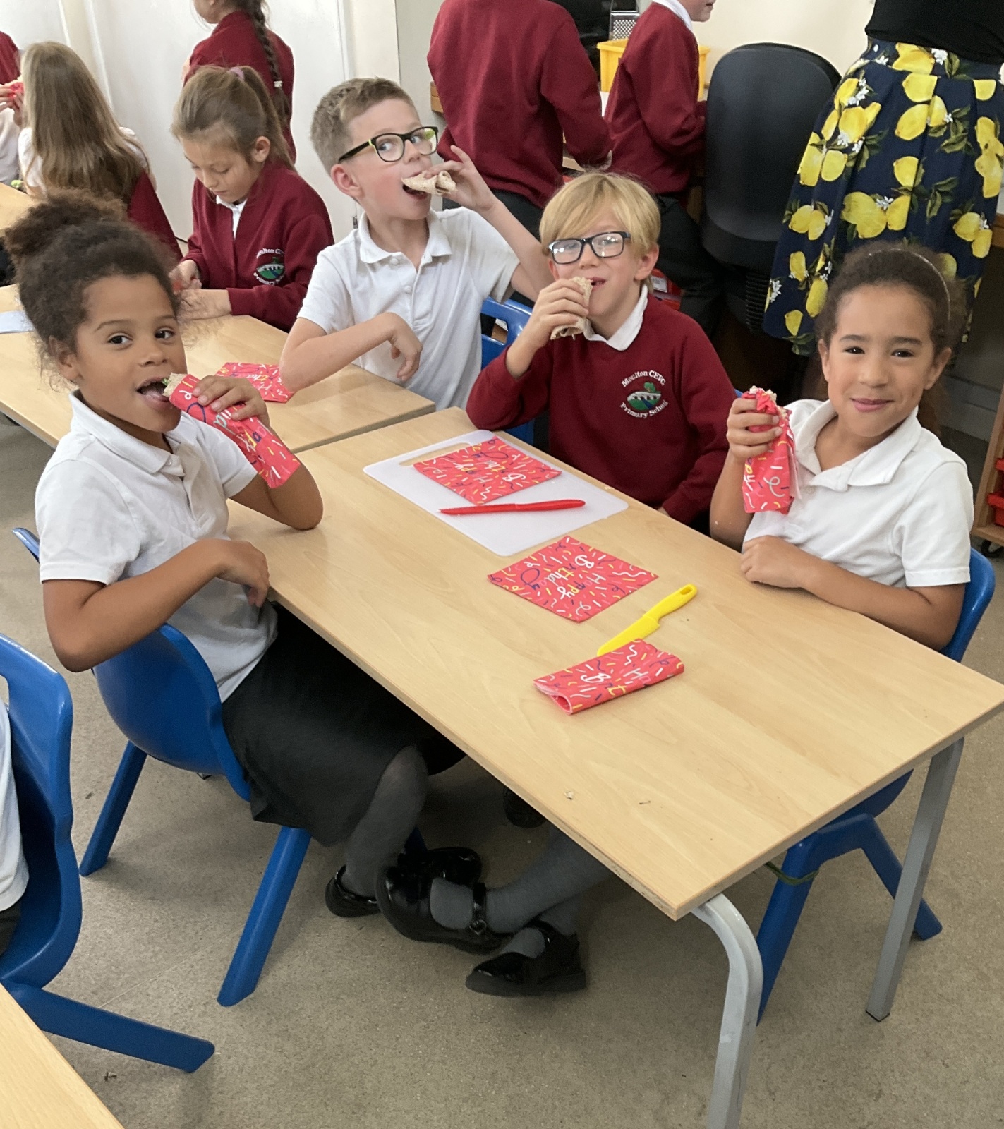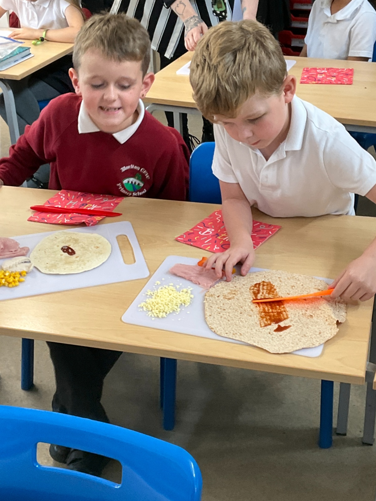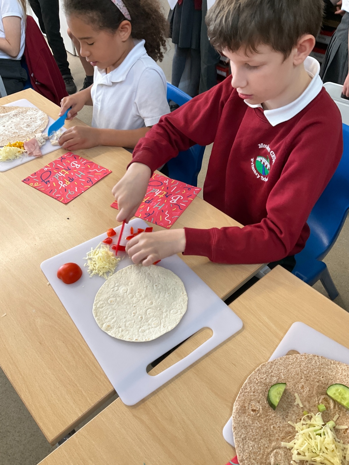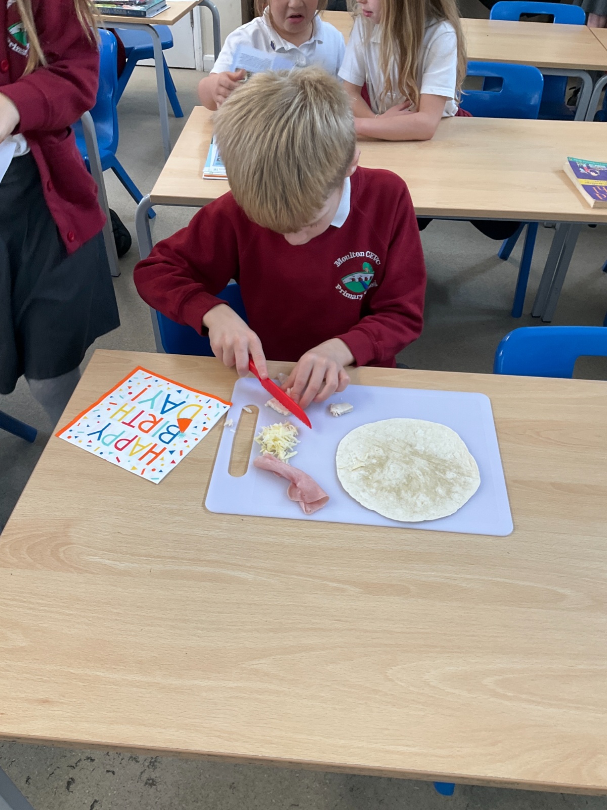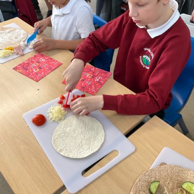 Budding Year 3 chefs rolled up their sleeves (and their wraps) in Design Technology. Drawing on their scientific understanding of the five food groups (and tastebuds), they designed their own healthy, balanced wraps. With independent, careful slicing, grating, spreading, and folding, their creations were as nutritious as they were delicious.