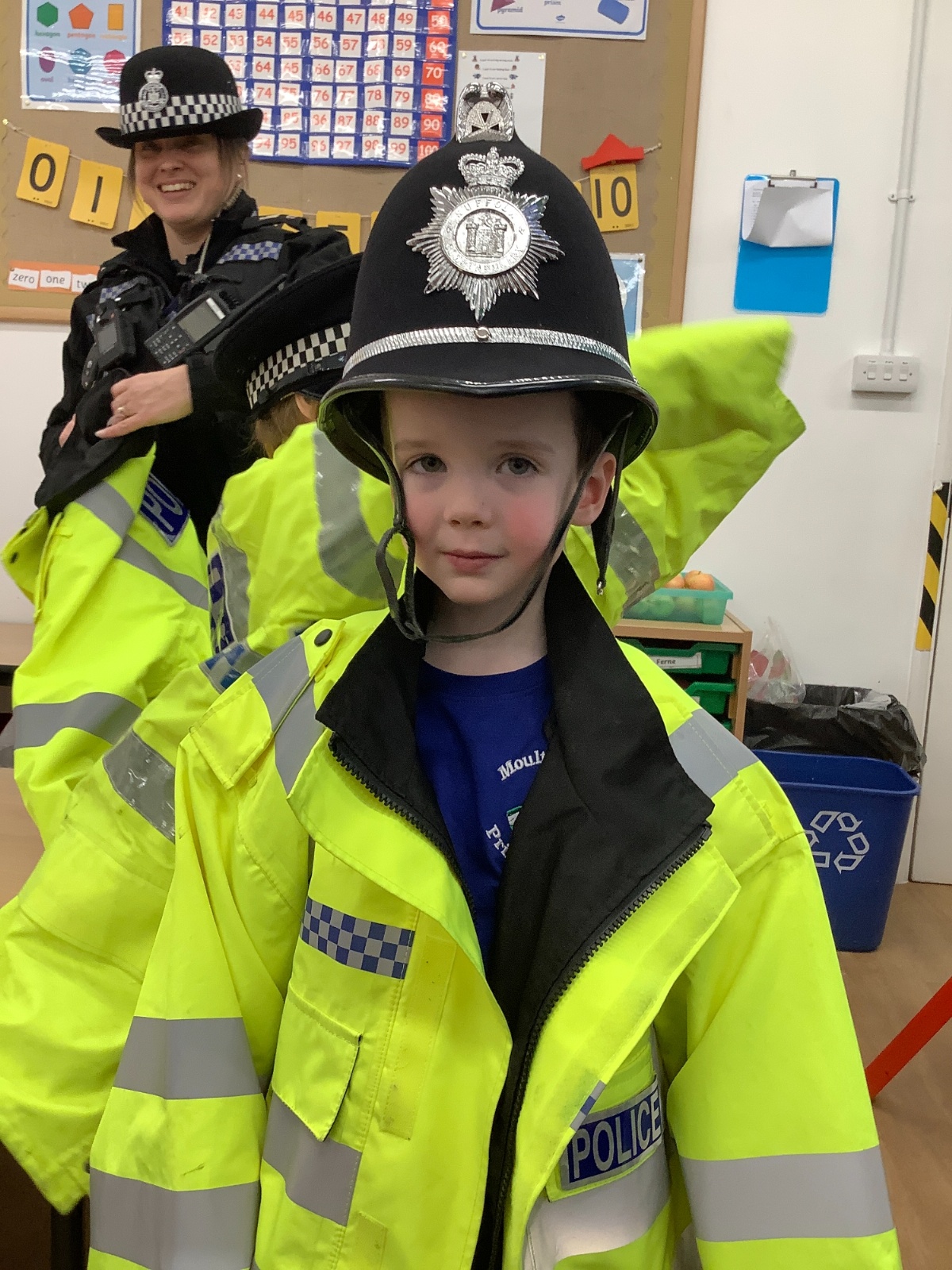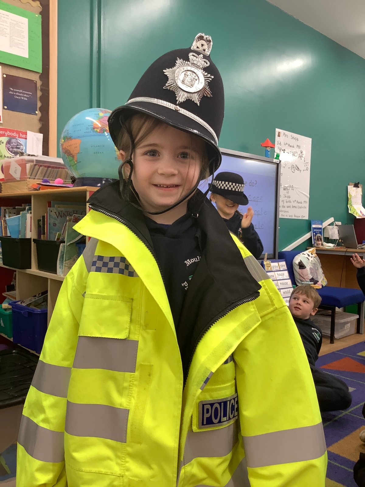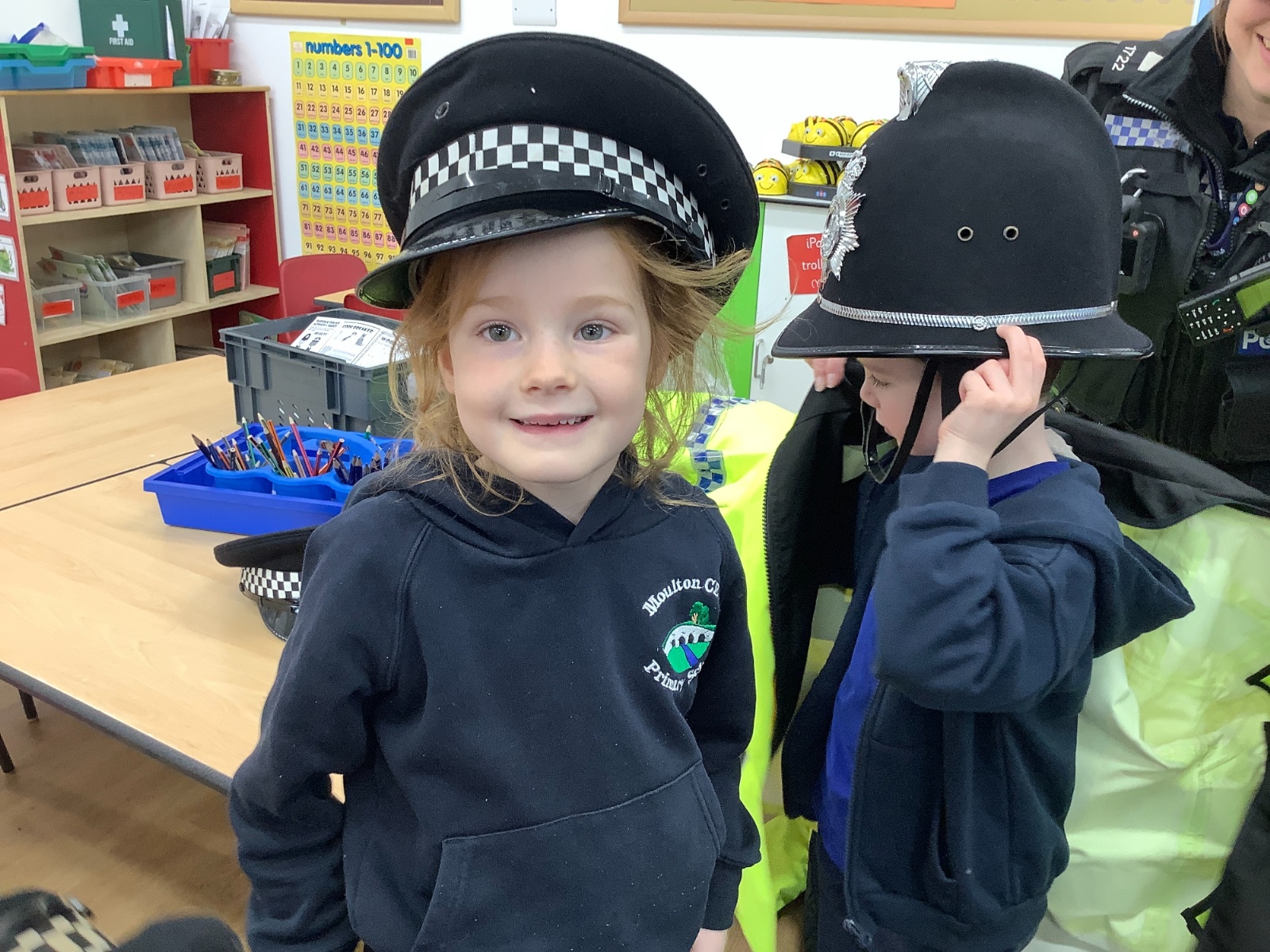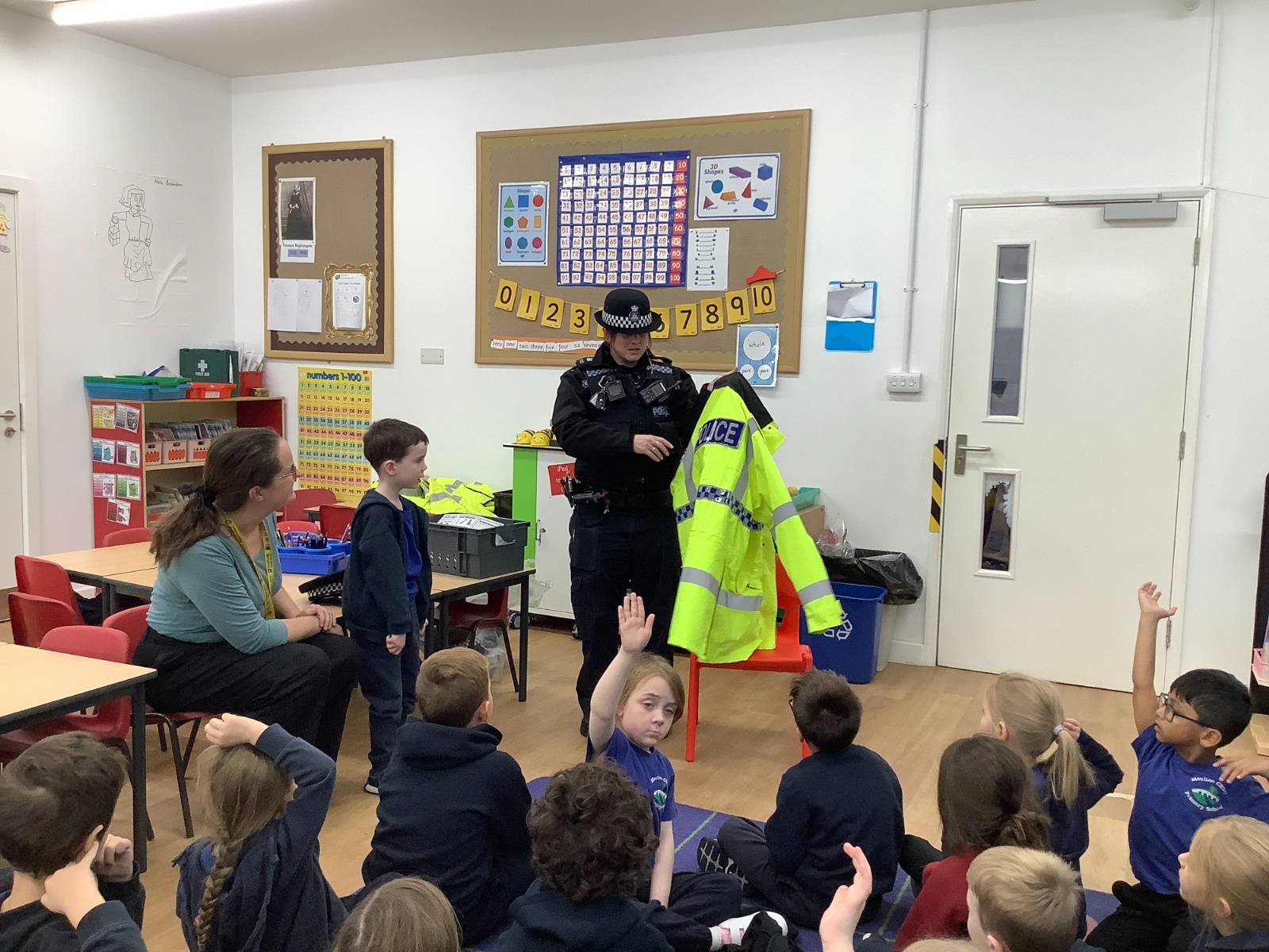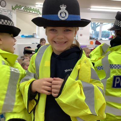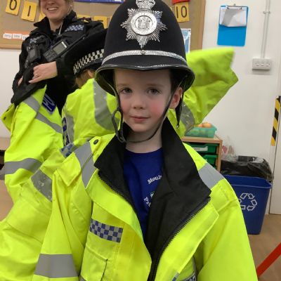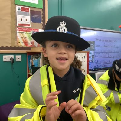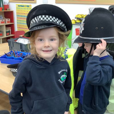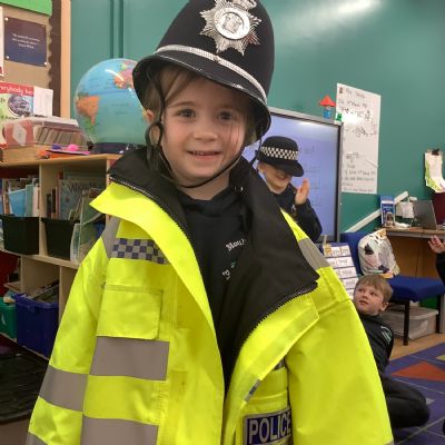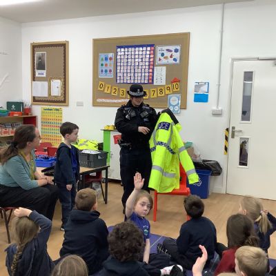 Our year 1 class had a very special visitor this week. A police officer with her car and uniform for the children to try on. She spent time explaining about the different hats and helmets the police wear and how to turn the sirens on in the car!! It was a rather noisy session out in the playground!