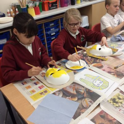 Our year 5 children have had good fun, designing and making their own Egyptian death masks.