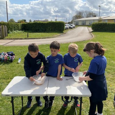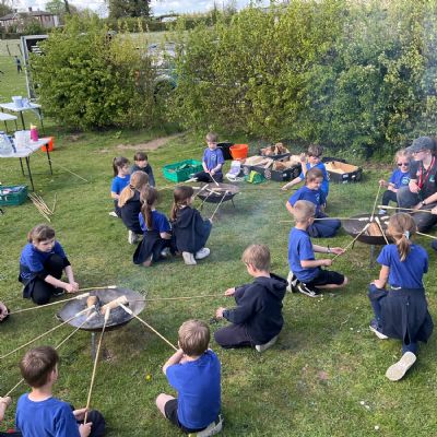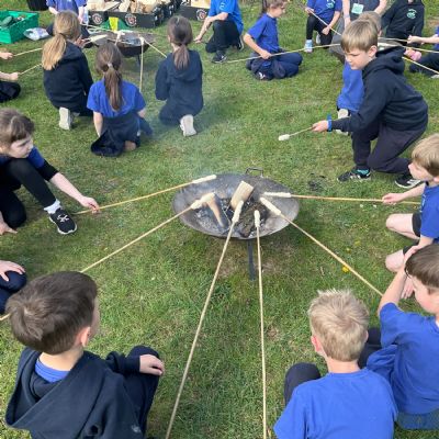 The year 2 children enjoyed baking bread over the firepit. They also had a good time with the archery and team games.